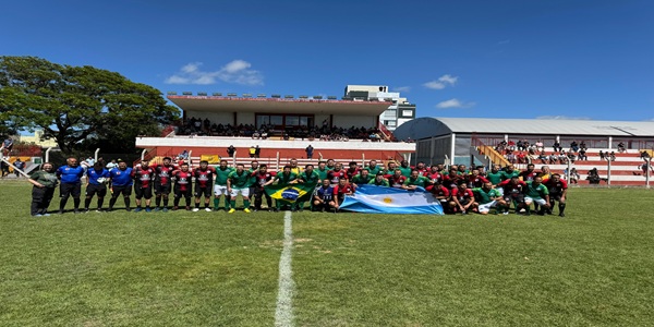 O 1º Jogo de Integração Internacional, realizado pela ABTI em parceria com a Dellmar Transportes, celebrou o esporte como instrumento de união entre a fronteira de Uruguaiana e Paso de los Libres. A partida inédita aconteceu no último sábado (22/11), no estádio Ferro Carril entre a Aduana brasileira e a Aduana argentina, e terminou em um empate em 3x3 entre as equipes, com gols brasileiros marcados por Alexandre Gaúcho e Luís Mário, o “Papa-Léguas”.