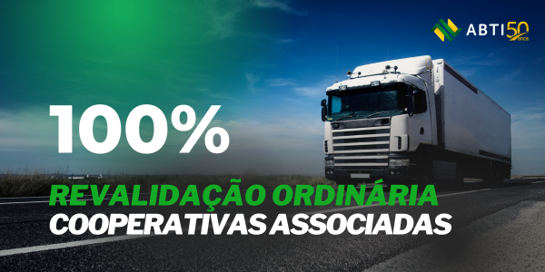 A ABTI tem o prazer em informar que 100% de seu quadro associativo de cooperativas finalizou o processo de Revalidação Ordinária do Registro Nacional de Transportadores Rodoviários de Cargas (RNTRC) da Agência Nacional de Transportes Terrestres (ANTT), antes do encerramento do prazo.