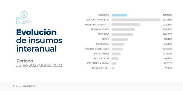 O Índice de Custos de Transporte elaborado pela Federação Argentina de Entidades Empresariais de Transporte Rodoviário de Carga (FADEEAC) acumula 52,33% de crescimento no primeiro semestre de 2023 e 126,8% entre junho de 2022 a junho de 2023.
