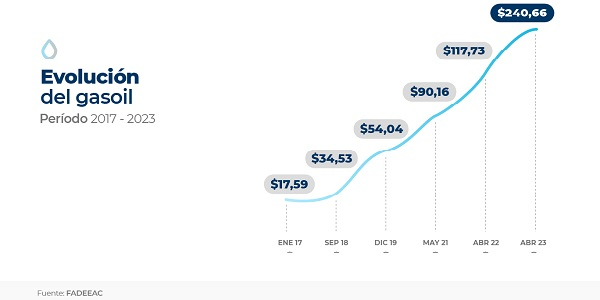 O setor acompanha o assunto com especial preocupação já que as projeções indicam que em maio o piso do aumento dos custos será de 8%, a partir da entrada em vigor da terceira parcela do acordo coletivo e do aumento do diesel em torno de 4,5%, no quadro dos acordos de preços estabelecidos entre o Estado Nacional e as empresas petrolíferas.
