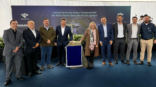 Na manhã desta segunda-feira (4/8), ocorreu a cerimônia de lançamento da pedra fundamental do novo Porto Seco de Foz do Iguaçu (PR), realizada pela concessionária Multilog. O evento marca oficialmente o início das obras de implantação da nova estrutura, que contará com um investimento estimado em R$ 500 milhões e será construída em uma área de aproximadamente 550 mil metros quadrados, às margens da BR-277.