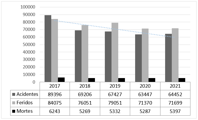A ABTI apresenta alguns dados estatísticos sobre acidentes em rodovias federais brasileiras, conforme coleta de dados do Painel Acidente, da CNT (2021):