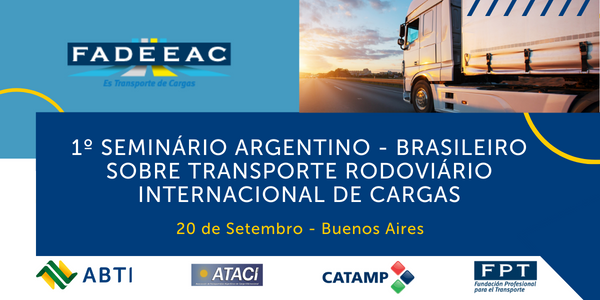 Buenos Aires sediará no dia 20 de setembro, o 1º Seminário Argentino – Brasileiro sobre Transporte Rodoviário Internacional de Cargas. O evento é uma realização das entidades coirmãs FADEEAC, ATACI, CATAMP e ABTI, e poderá contar com a participação de representantes brasileiros, como a Agência Nacional de Transportes Terrestres (ANTT) e o SEST SENAT, e argentinos, como a Comisión Nacional de Regulación del Transporte - CNRT e Subsecretaria de Transporte Automotor.