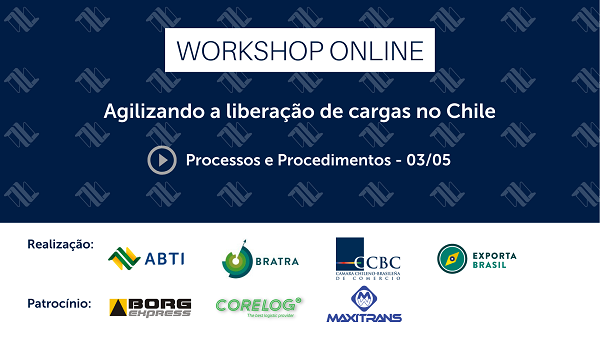 A ABTI, a Câmara Chileno-Brasileña de Comércio Exterior e o Programa Exporta Brasil, darão continuidade no dia 03 de maio, às 17h, à 2ª etapa do Workshop agilizando a liberação de cargas no Chile. A primeira abordou sobre documentação e o segundo será sobre processos e procedimentos. O evento integra a proposta da Associação de apresentar aos seus associados conteúdos relevantes para o desenvolvimento do transporte rodoviário internacional de cargas.