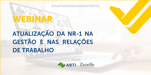 A ABTI, em parceria com sua assessoria jurídica Zanella Advogados Associados, convida para um webinar exclusivo que irá abordar os desdobramentos da NR-1, sob seus aspectos jurídicos, médicos e psicológicos. Uma excelente oportunidade de estar a par das atualizações.