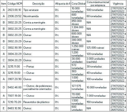 Confira as cotas para importação estabelecidas pela Resolução GECEX nº 217/2021: