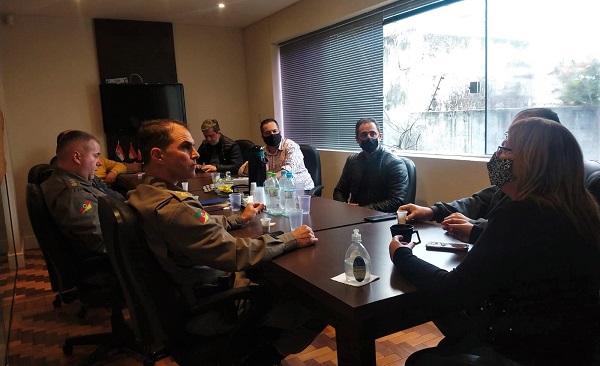 A ABTI recebeu em sua sede o novo comandante da Brigada Militar de Uruguaiana, Tenente Coronel Ives Pacheco, para uma reunião a fim de compartilhar informações sobre o setor de comércio exterior no município e na região de abrangência do comando de Uruguaiana. Além da diretora executiva da Associação, e demais representantes da Brigada Militar, participam do encontro o vereador e líder do Governo na Câmara Municipal de Uruguaiana, Celso Duarte, o assessor parlamentar do Deputado Frederico Antunes, Régis de Lima, o secretário municipal de Planejamento Estratégico, Carlos Prudêncio, e o empresário do setor, Fabio Ciocca.