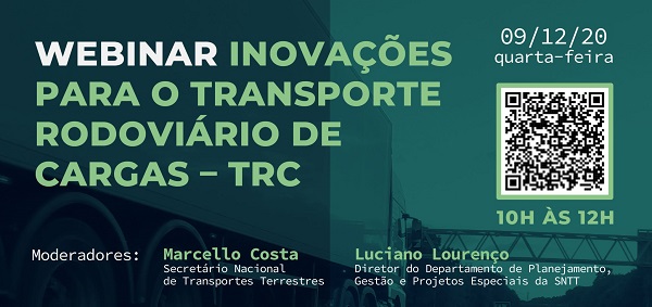 Nesta quarta-feira, 09 de dezembro, a partir das 10h, o Ministério da Infraestrutura promove a webinar "Inovações para o Transporte Rodoviário de Cargas".