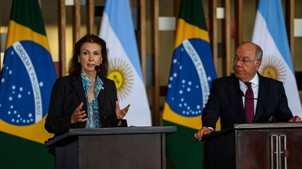 "A principal mensagem que gostaria de transmitir neste momento é a segurança que temos sobre a centralidade e relevância da relação bilateral. Tornou-se uma verdadeira política de Estado", disse Mondino, em breve declaração à imprensa após o encontro no Palácio do Itamaraty, sede das relações exteriores do Brasil.
