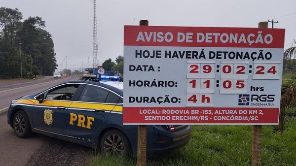 Em obras até o fim de 2024, o trecho da BR-153 que liga Erechim, no norte gaúcho, ao município catarinense de Concórdia, deverá passar por bloqueios semanais até setembro. A previsão é do Departamento Nacional de Infraestrutura e Transportes (Dnit), que realiza obras na via.
